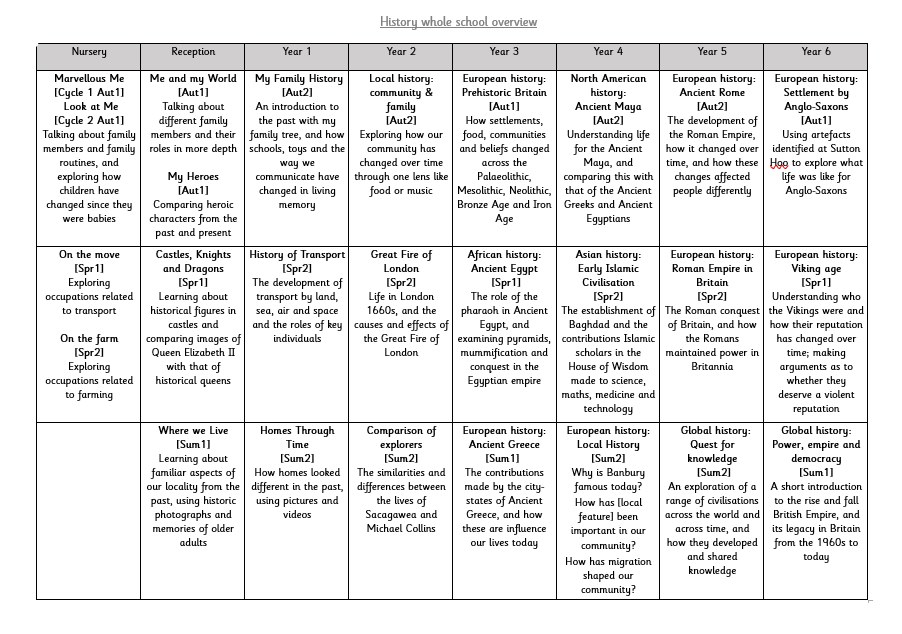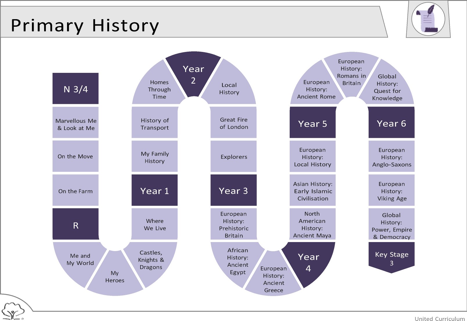 By ensuring high standards of teaching and learning in history, we implement a curriculum that is progressive throughout the whole school. History is taught as part of a termly or half-termly topic, focusing on knowledge and skills stated in the National Curriculum. The curriculum is coherent and teaches chronological substantive knowledge of the history of Britain and the wider world, selected to build pupils’ understanding of three vertical concepts. These vertical concepts provide both a concrete lens through which to study and contextualise history: