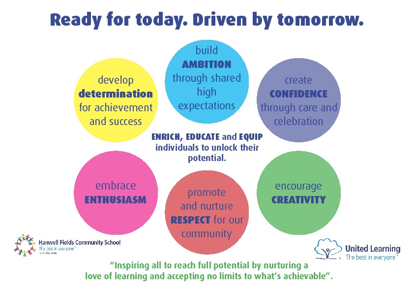 Our ethos at Hanwell Fields is to Enrich, Educate, and Equip our pupils ready for their next phase of education and life. We believe that the development of their character is essential to being ready for today but driven by tomorrow's world.